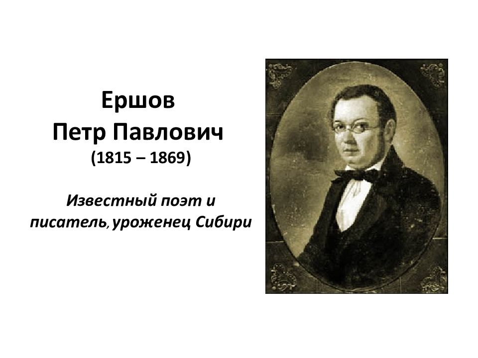 Первый слайд презентации: Ершов Петр Павлович (1815 – 1869) Известный поэт и писатель, уроженец Сибири