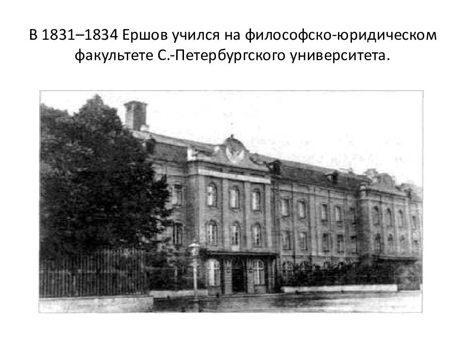 Слайд 4: В 1831–1834 Ершов учился на философско-юридическом факультете С.-Петербургского университета