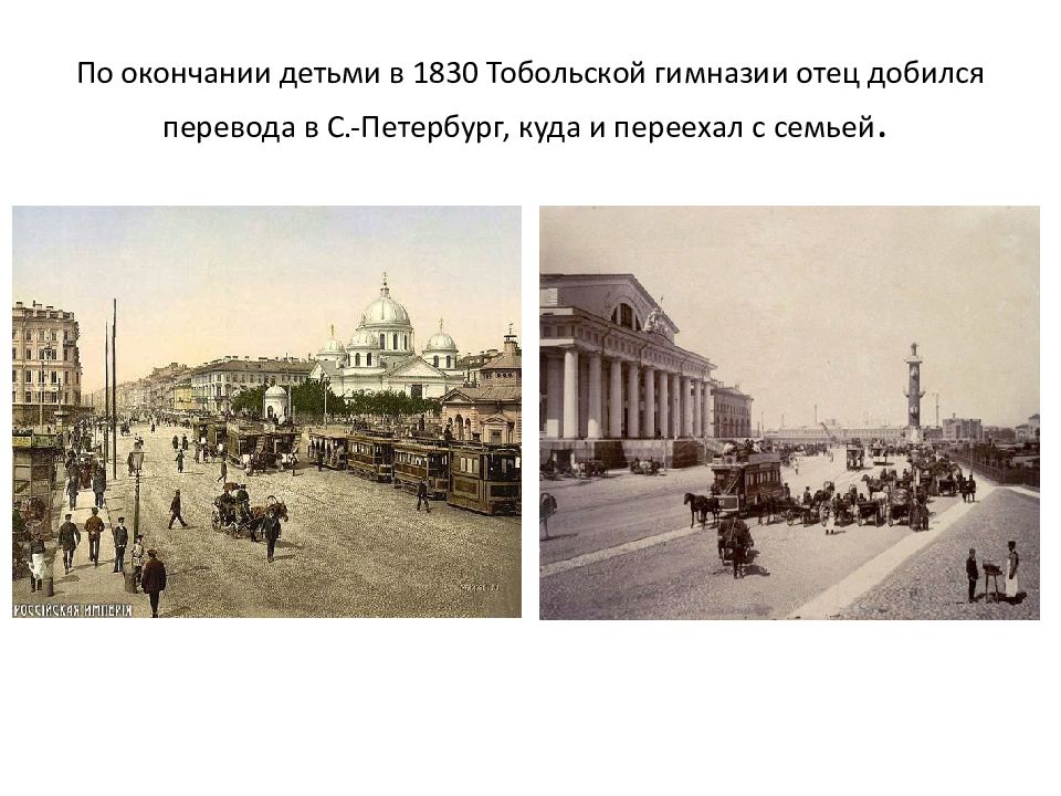 Слайд 3: По окончании детьми в 1830 Тобольской гимназии отец добился перевода в С.-Петербург, куда и переехал с семьей