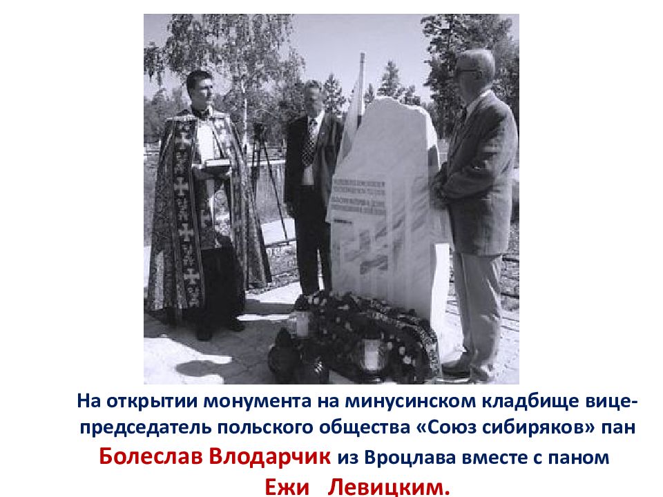 На открытии монумента на минусинском кладбище вице-председатель польского общества «Союз сибиряков» пан Болеслав Влодарчик из Вроцлава вместе с паном Ежи Левицким.