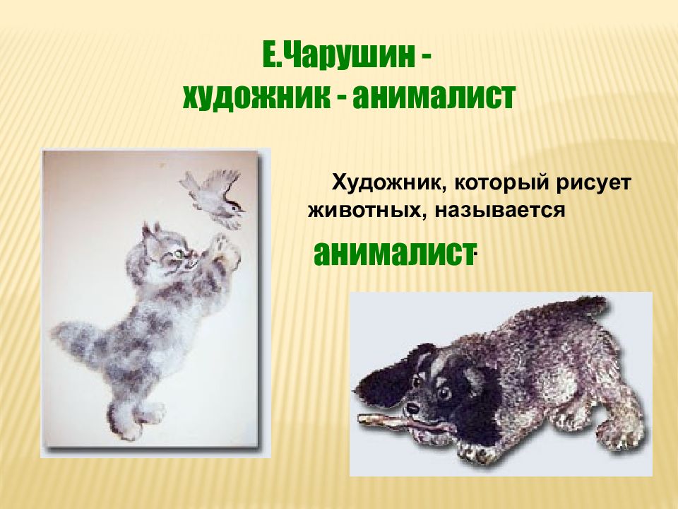 Е.Чарушин - художник - анималист Художник, который рисует животных, называется . анималист