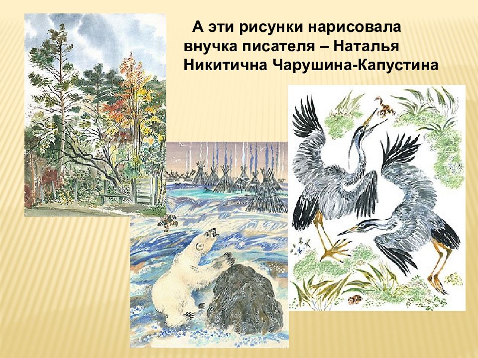А эти рисунки нарисовала внучка писателя – Наталья Никитична Чарушина-Капустина
