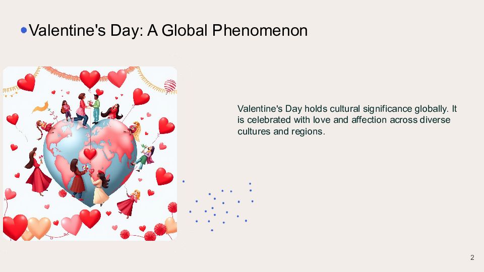 Valentine's Day holds cultural significance globally. It is celebrated with love and affection across diverse cultures and regions. Valentine's Day: A Global Phenomenon 2