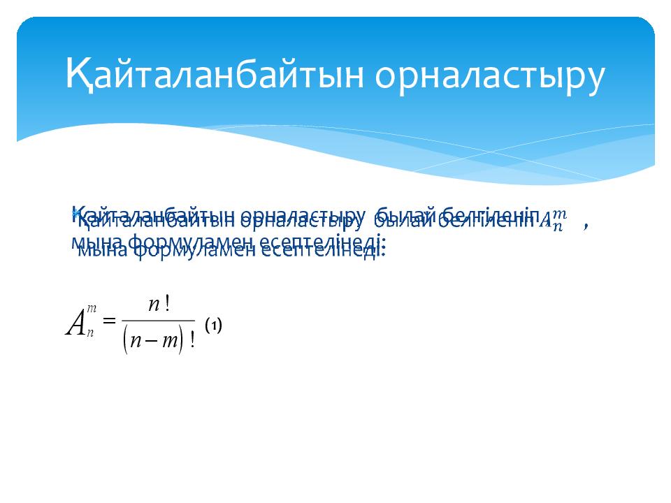 былай белгіленіп, мына формуламен есептелінеді: Қайталанбайтын орналастыру (1)