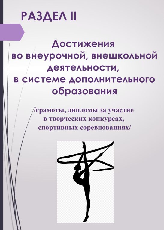 РАЗДЕЛ II Достижения во внеурочной, внешкольной деятельности, в системе дополнительного образования /грамоты, дипломы за участие в творческих конкурсах, спортивных соревнованиях/