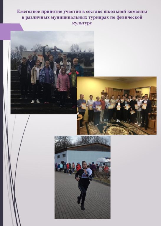 Ежегодное принятие участия в составе школьной команды в различных муниципальных турнирах по физической культуре