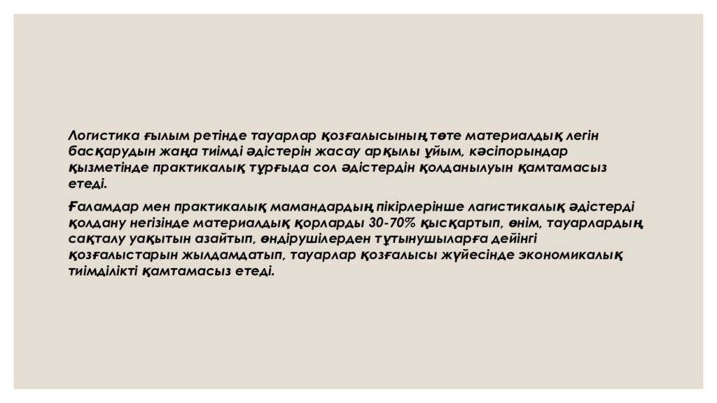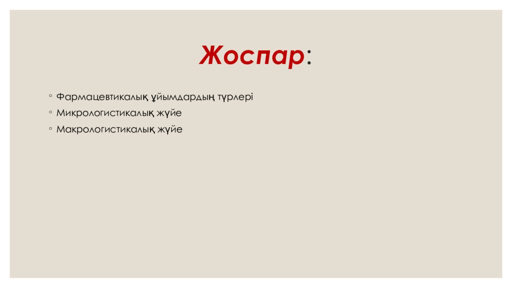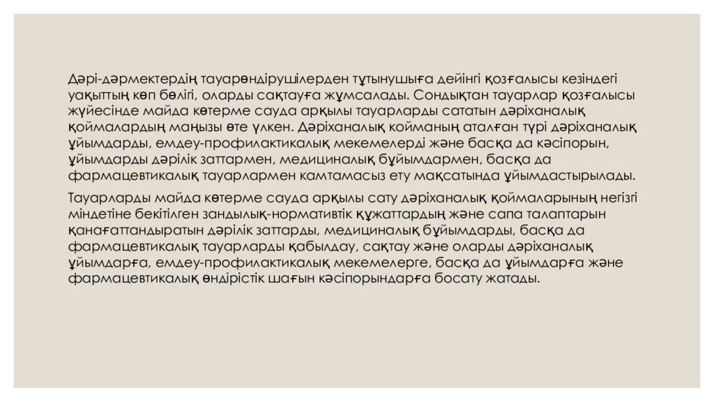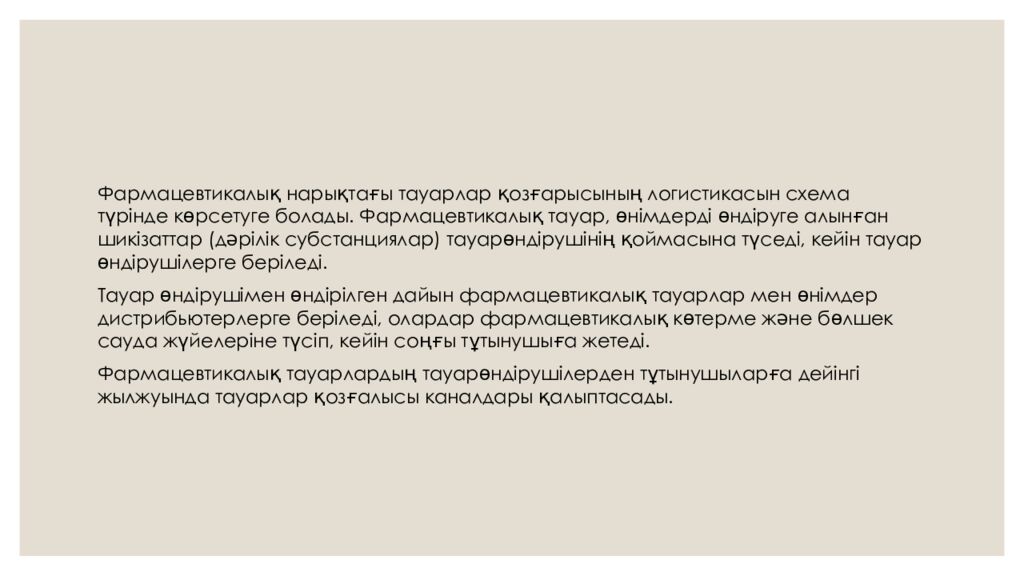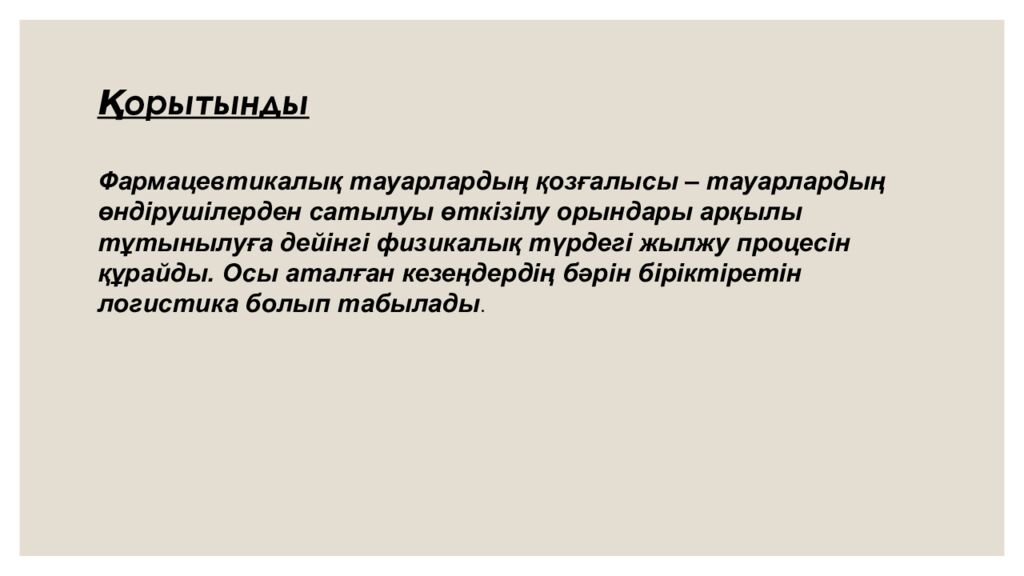 Последний слайд презентации: ФАРМАЦЕВТИКАЛЫҚ ҰЙЫМДАРДЫ ЛОГИСТИКАЛЫҚ ЖҮЙЕ АРҚЫЛЫ БАСҚАРУ