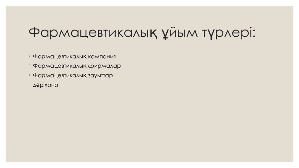 Слайд 5: Фармацевтикалық ұйым түрлері: