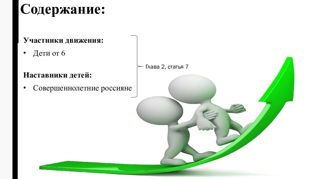 Участники движения: Дети от 6 Наставники детей: Совершеннолетние россияне Глава 2, статья 7