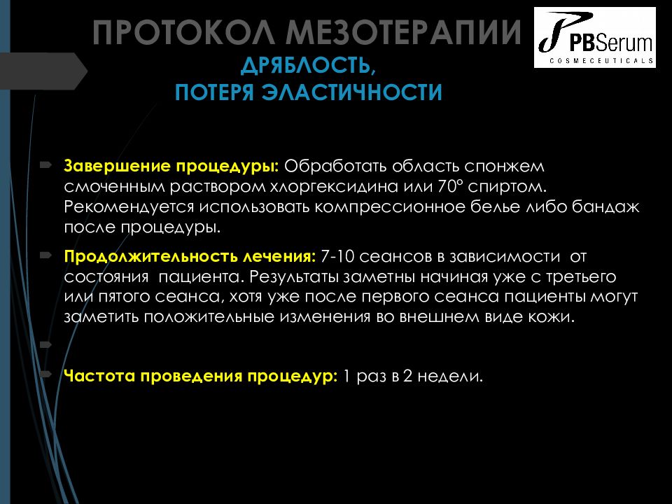 Слайд 25: ПРОТОКОЛ МЕЗОТЕРАПИИ ДРЯБЛОСТЬ, ПОТЕРЯ ЭЛАСТИЧНОСТИ