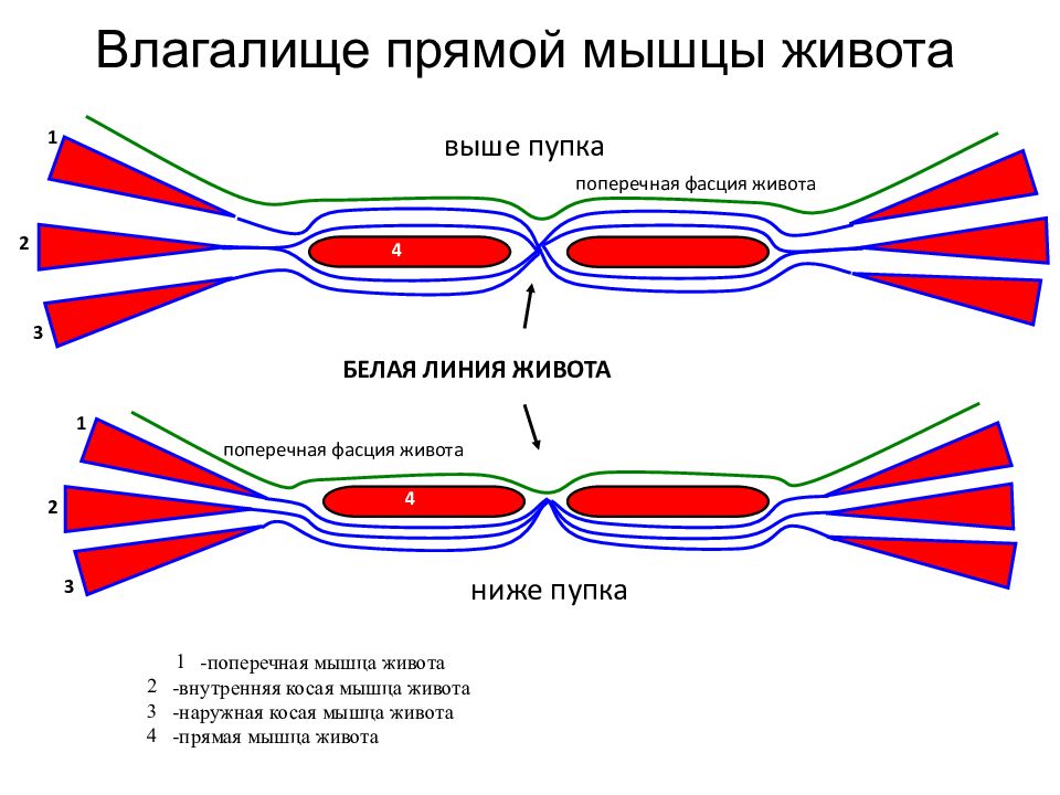 Влагалище прямой мышцы живота ниже пупка 1 2 3 поперечная фасция живота 4 1 2 3 поперечная фасция живота 4 БЕЛАЯ ЛИНИЯ ЖИВОТА -поперечная мышца живота -внутренняя косая мышца живота -наружная косая мышца живота -прямая мышца живота выше пупка