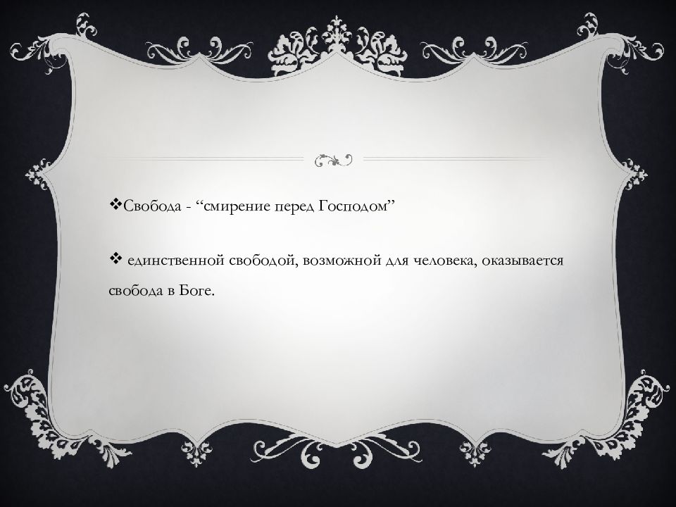 Свобода - “смирение перед Господом ” единственной свободой, возможной для человека, оказывается свобода в Боге.