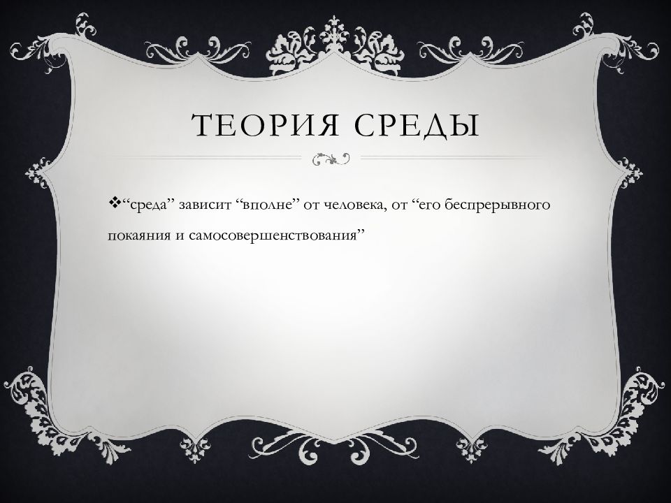 “среда” зависит “вполне” от человека, от “его беспрерывного покаяния и самосовершенствования”