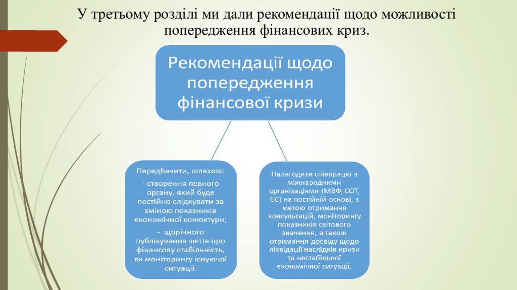 У третьому розділі ми дали рекомендації щодо можливості попередження фінансових криз.