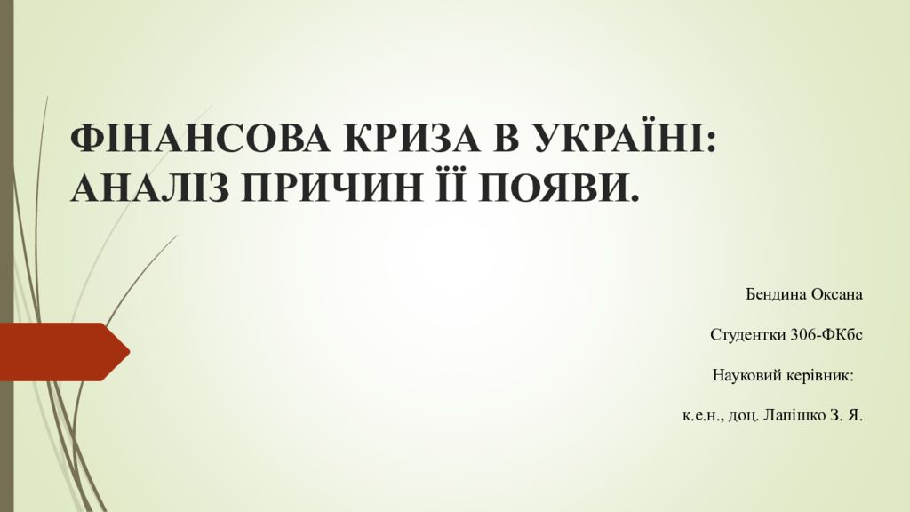 Первый слайд презентации: ФІНАНСОВА КРИЗА В УКРАЇНІ: АНАЛІЗ ПРИЧИН ЇЇ ПОЯВИ
