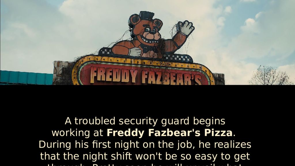 A troubled security guard begins working at Freddy Fazbear's Pizza. During his first night on the job, he realizes that the night shift won't be so easy to get through. Pretty soon he will unveil what actually happened at Freddy 's.