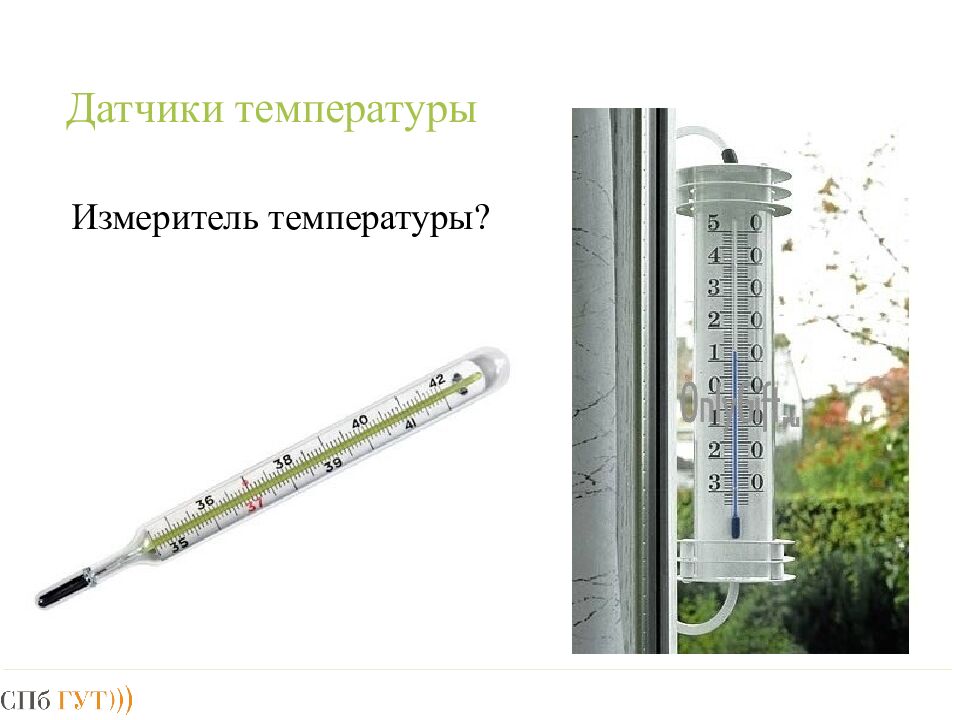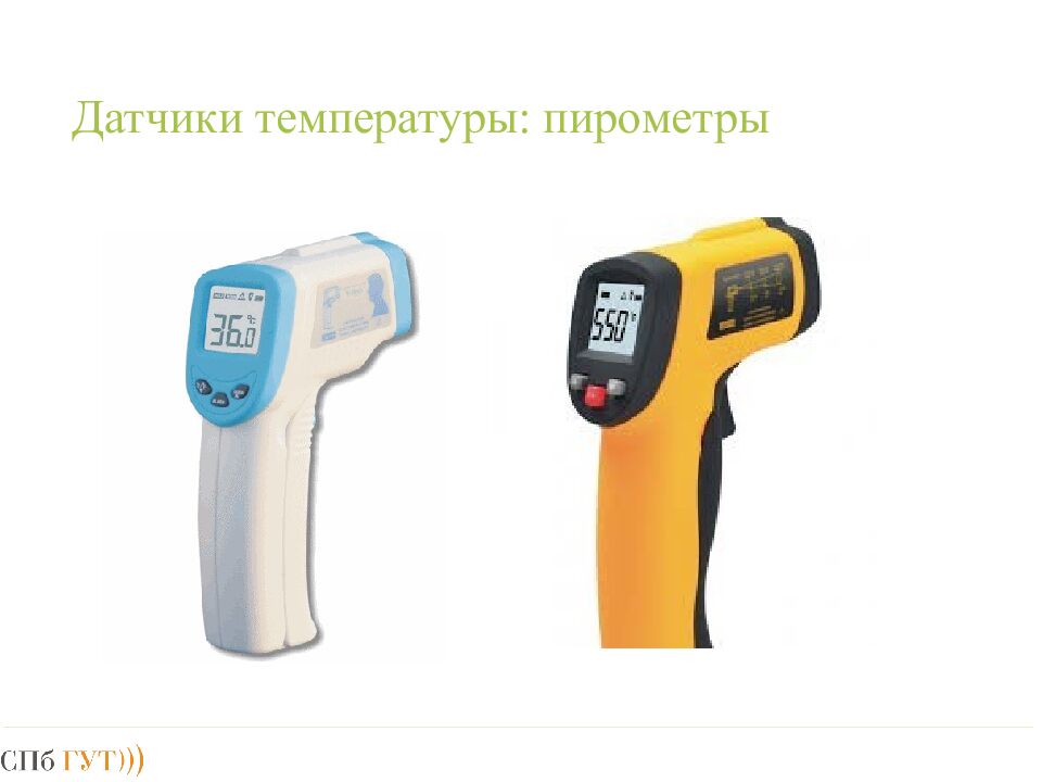 Датчики температуры могут использовать несколько физических явлений: Изменение сопротивления вещества при изменении температуры (терморезисторы). Эффект Зеебека (термопары). Измерение инфракрасного излучения (пирометры). Кварцевые преобразователи. И другие.