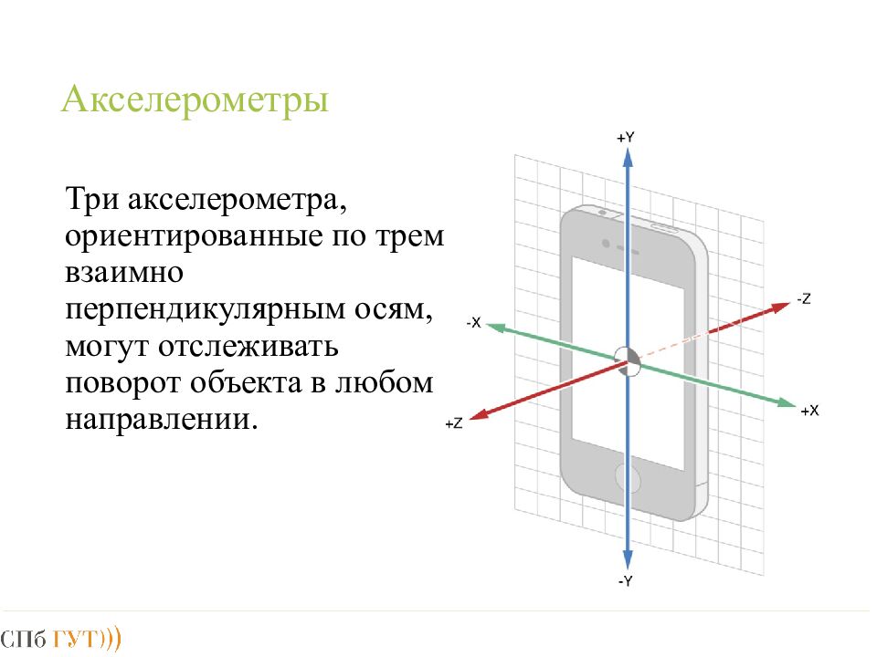 Три акселерометра, ориентированные по трем взаимно перпендикулярным осям, могут отслеживать поворот объекта в любом направлении.