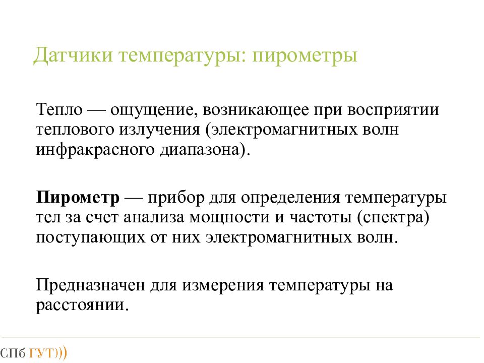 Тепло — ощущение, возникающее при восприятии теплового излучения (электромагнитных волн инфракрасного диапазона). Пирометр — прибор для определения температуры тел за счет анализа мощности и частоты (спектра) поступающих от них электромагнитных волн. Предназначен для измерения температуры на расстоянии.