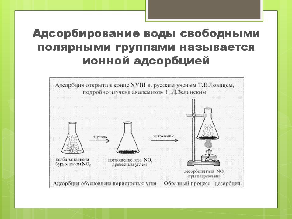 Адсорбирование воды свободными полярными группами называется ионной адсорбцией