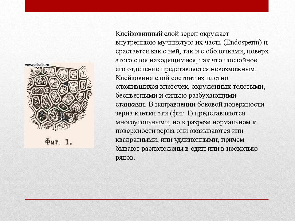Клейковинный слой зерен окружает внутреннюю мучнистую их часть ( Endosperm ) и срастается как с ней, так и с оболочками, поверх этого слоя находящимися, так что послойное его отделение представляется невозможным. Клейковина слой состоит из плотно сложившихся клеточек, окруженных толстыми, бесцветными и сильно разбухающими станками. В направлении боковой поверхности зерна клетки эти (фиг. 1) представляются многоугольными, но в разрезе нормальном к поверхности зерна они оказываются или квадратными, или удлиненными, причем бывают расположены в один или в несколько рядов.