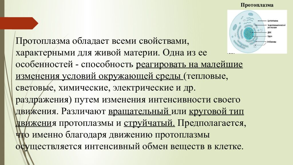 Первый слайд презентации: Физиологические свойства протоплазмы клетк и