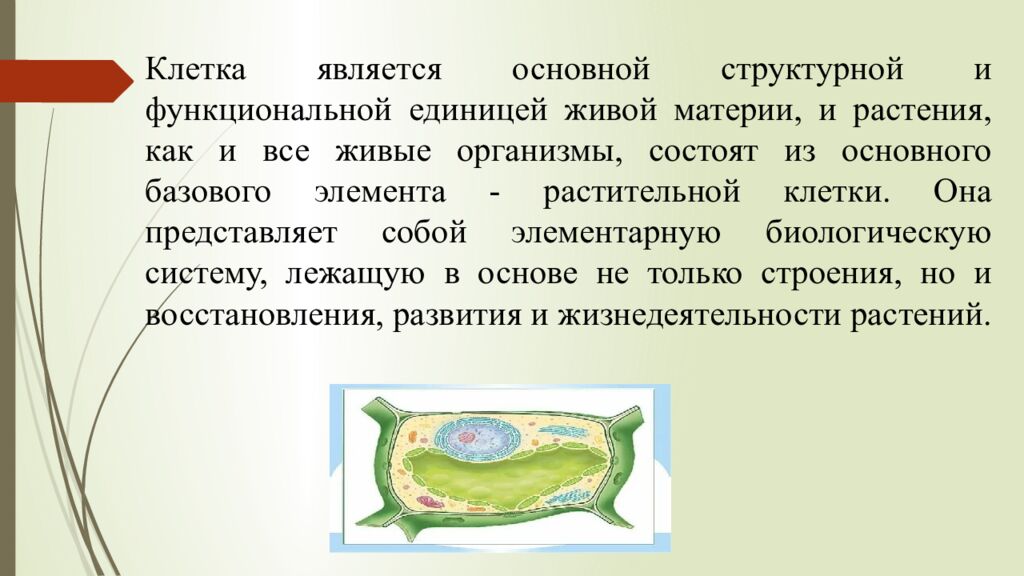 Клетка является основной структурной и функциональной единицей живой материи, и растения, как и все живые организмы, состоят из основного базового элемента - растительной клетки. Она представляет собой элементарную биологическую систему, лежащую в основе не только строения, но и восстановления, развития и жизнедеятельности растений.