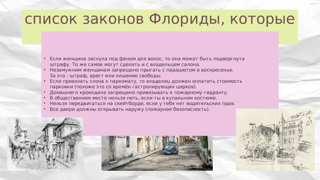Слайд 6: список законов Флориды, которые выглядят нелепо