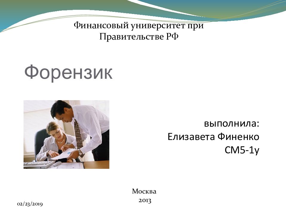 выполнила: Елизавета Финенко СМ5-1у Москва 2013 Финансовый университет при Правительстве РФ 16.02.2019