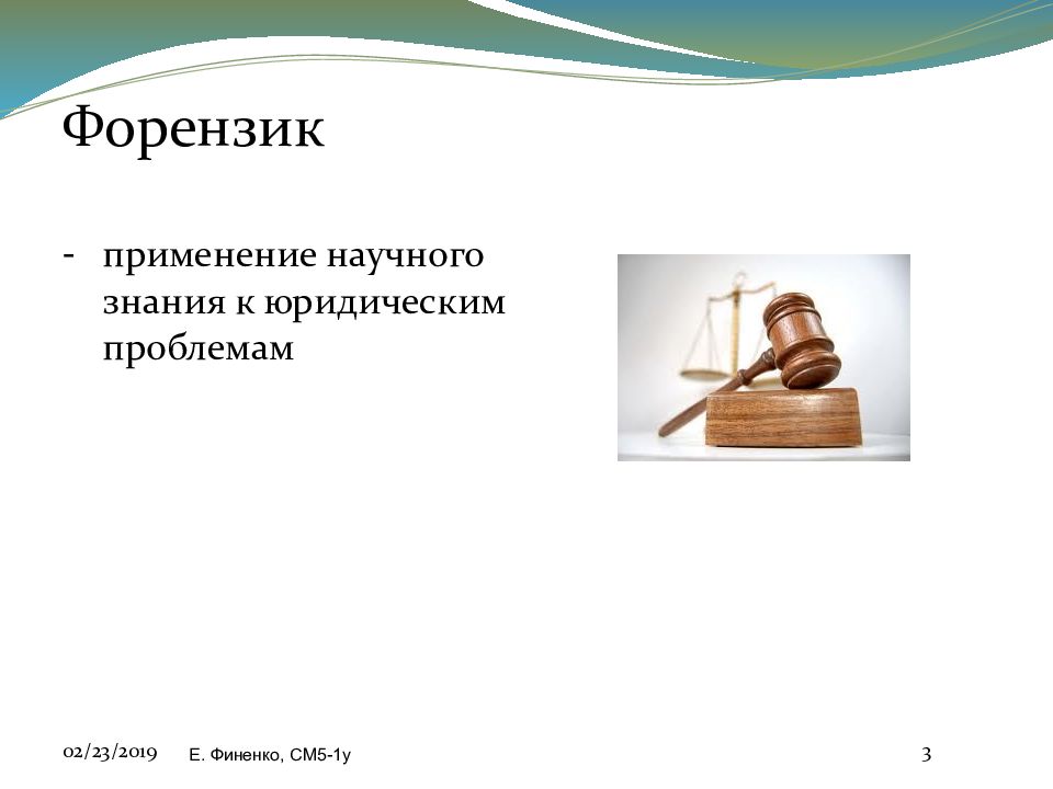 применение научного знания к юридическим проблемам 16.02.2019 3 Е. Финенко, СМ5-1у