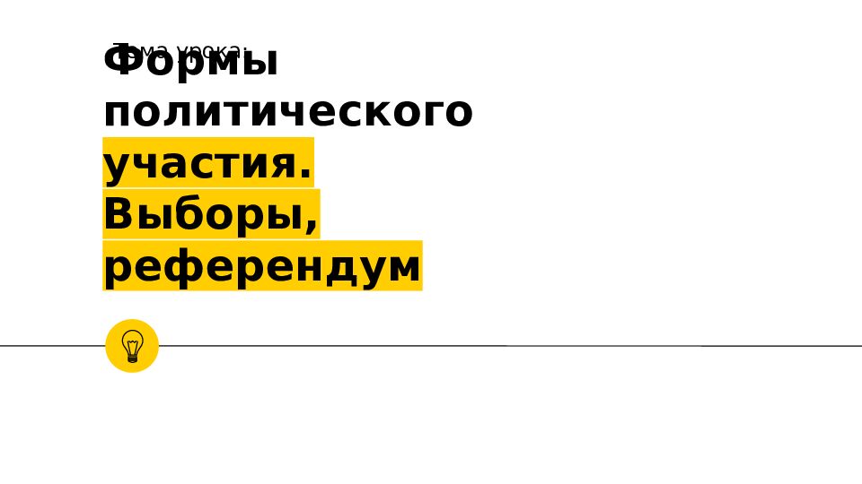 Первый слайд презентации: Формы политического участия. Выборы, референдум