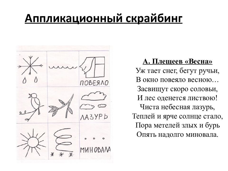 Аппликационный скрайбинг А. Плещеев «Весна» Уж тает снег, бегут ручьи, В окно повеяло весною… Засвищут скоро соловьи, И лес оденется листвою ! Чиста небесная лазурь, Теплей и ярче солнце стало, Пора метелей злых и бурь Опять надолго миновала.