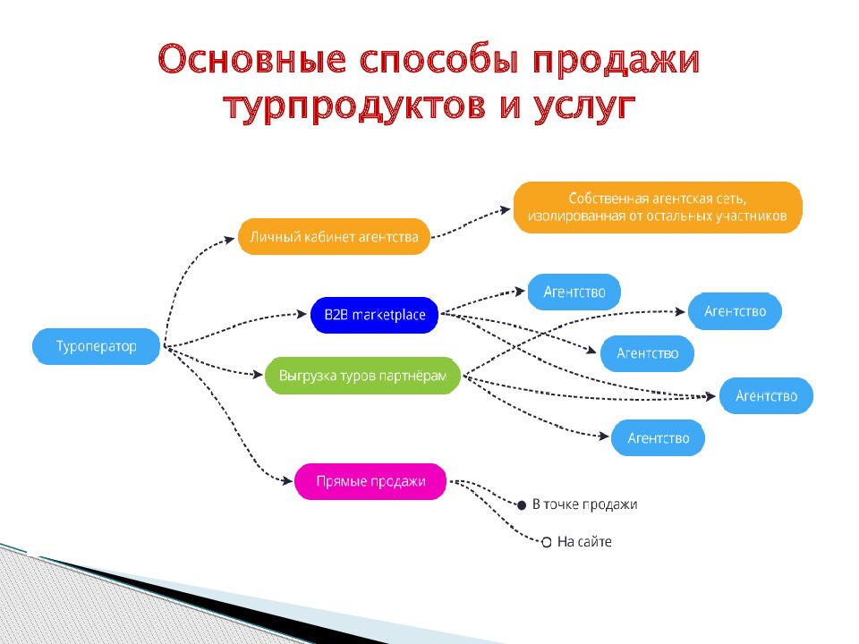 Туроператор Связи с организациями (корпоративные клиенты) Агентские сети Собственные бюро продаж