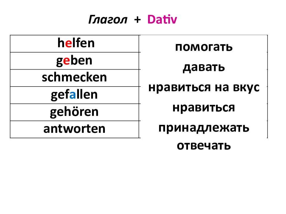 h e lfen g e ben schmecken gef a llen gehören antworten помогать давать нравиться на вкус нравиться принадлежать отвечать