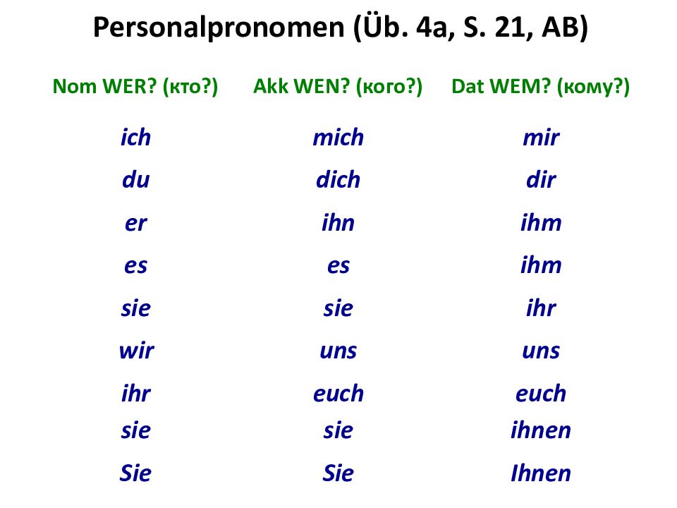 Слайд 4: Personalpronomen ( Üb. 4a, S. 21, AB)