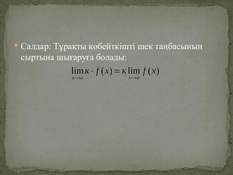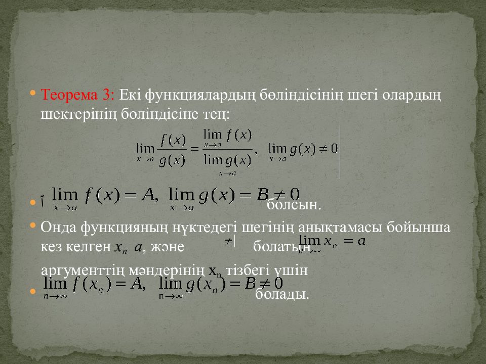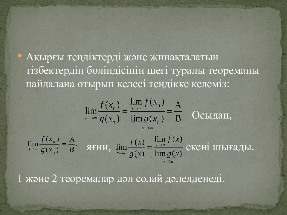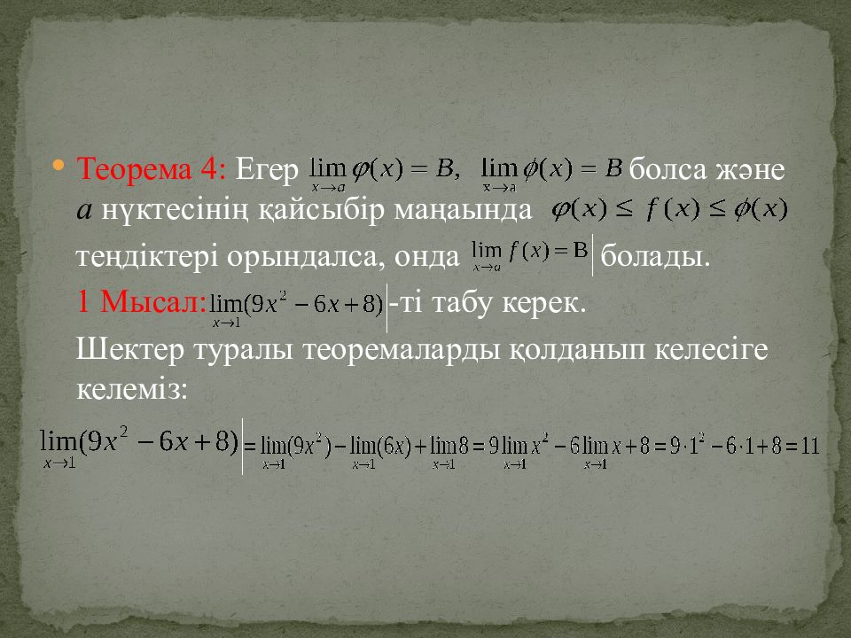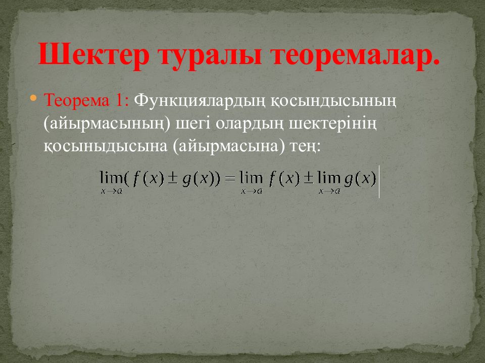 Слайд 8: Шектер туралы теоремалар