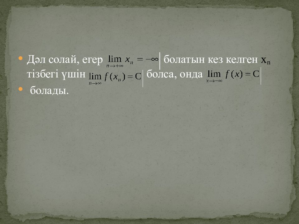 Слайд 20: Функцияның шексіздіктегі шегі