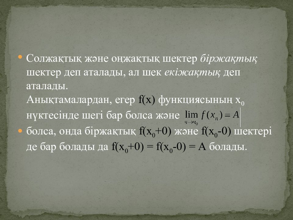 Первый слайд презентации: Функцияның шегі. Функцияның нүктедегі шегі