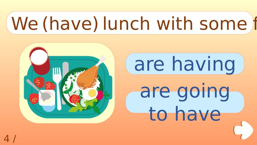 are having are going to have We (have) lunch with some friends tomorrow. 4 / 22