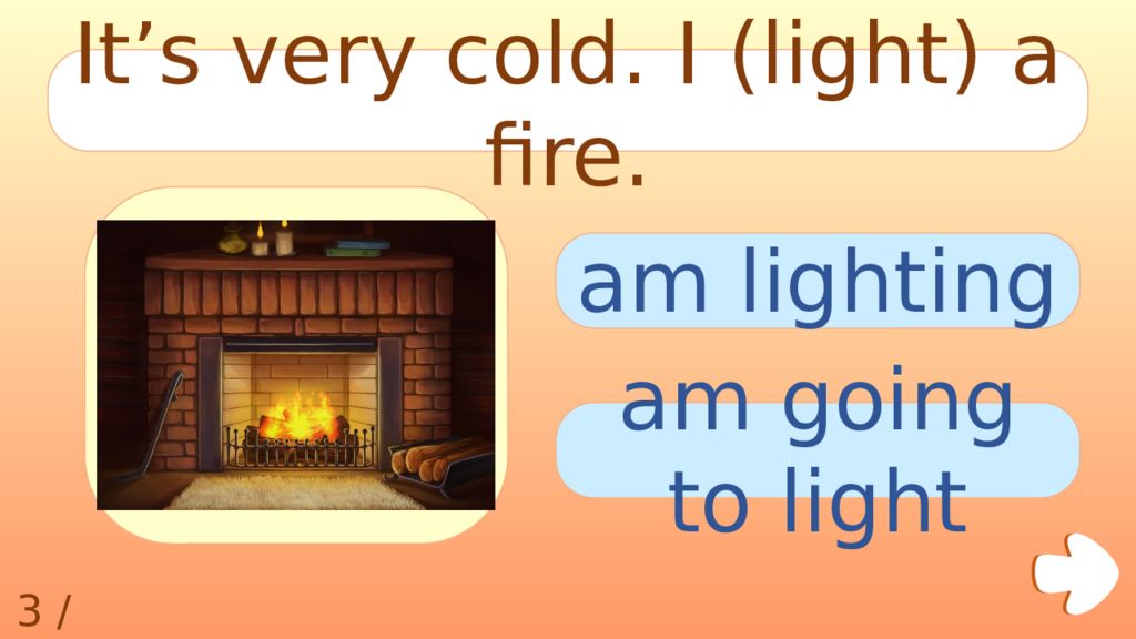 am lighting a m going to light It ’ s very cold. I (light) a fire. 3 / 22