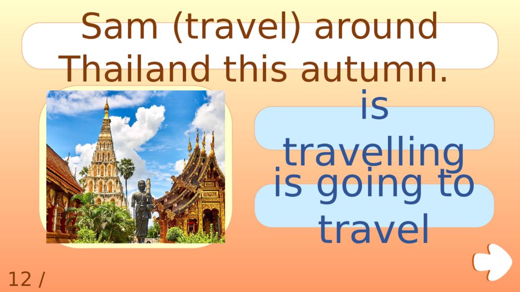 is travelling is going to travel Sam (travel) around Thailand this autumn. 12 / 22