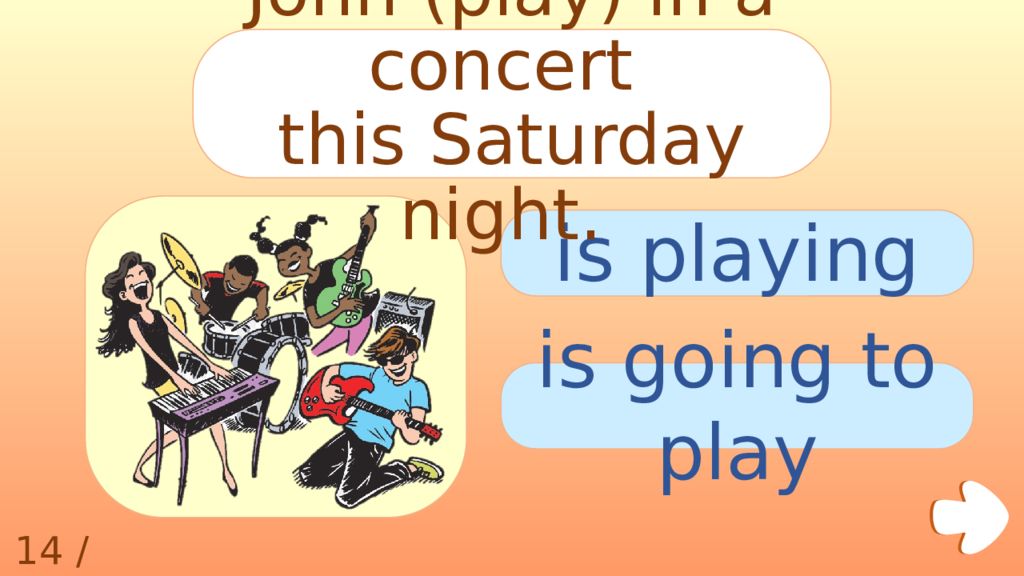 is playing is going to play John (play) in a concert this Saturday night. 14 / 22