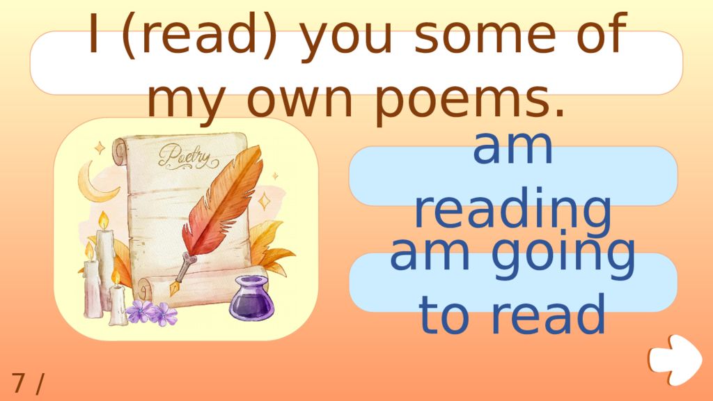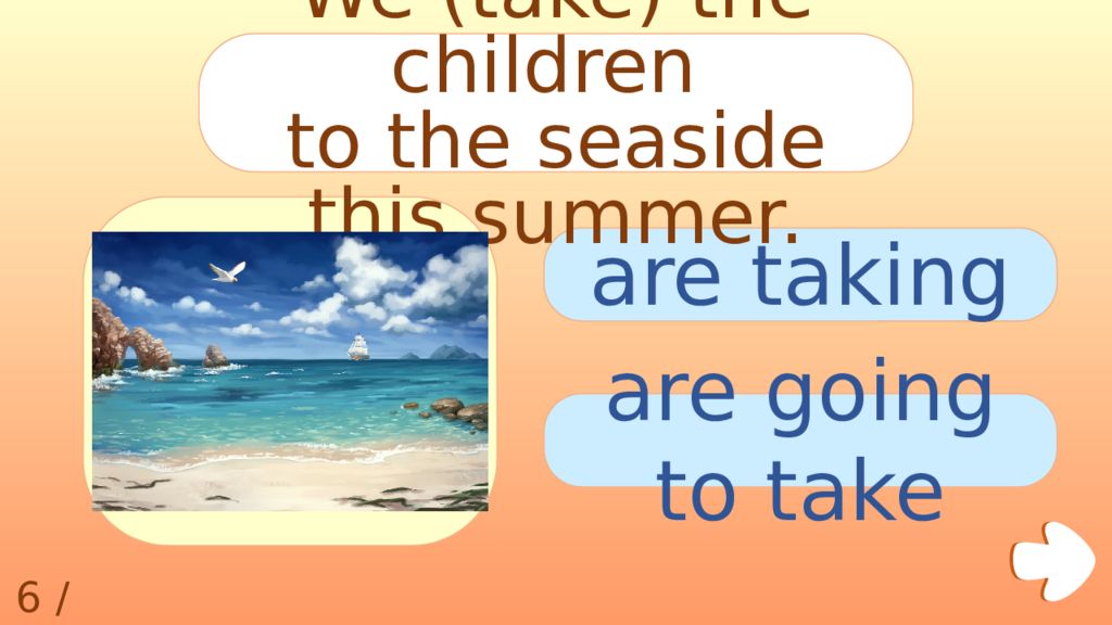 are taking are going to take We (take) the children to the seaside this summer. 6 / 22