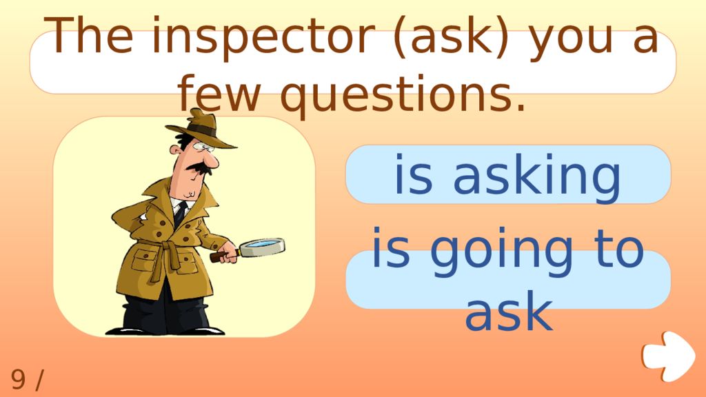 is asking is going to ask The inspector (ask) you a few questions. 9 / 22