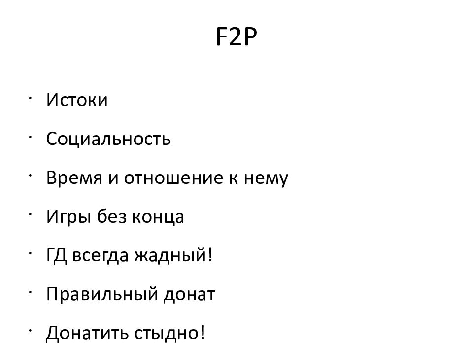 Истоки Социальность Время и отношение к нему Игры без конца ГД всегда жадный! Правильный донат Донатить стыдно!