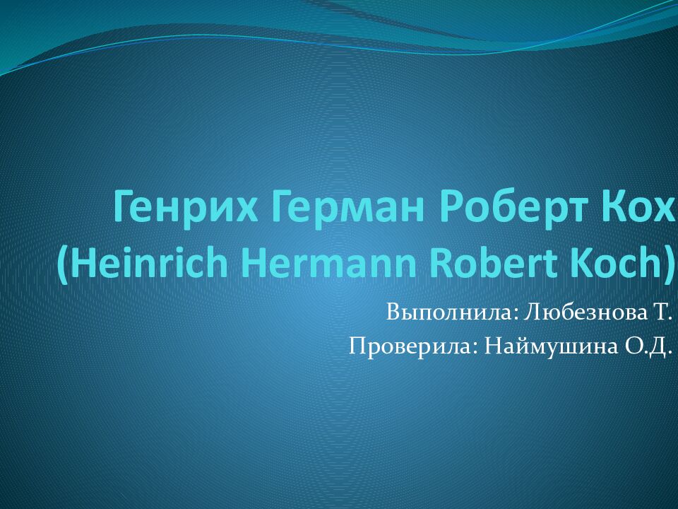 Первый слайд презентации: Генрих Герман Роберт Кох ( Heinrich Hermann Robert Koch )