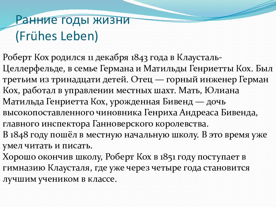 Слайд 3: Ранние годы жизни (Frühes Leben)