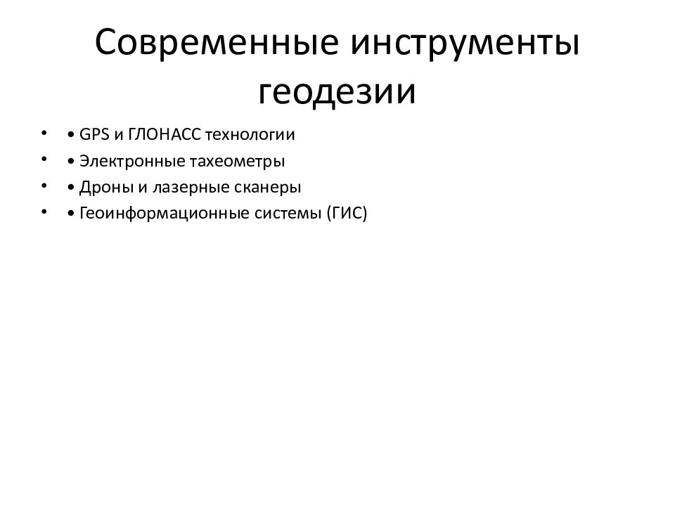 • GPS и ГЛОНАСС технологии • Электронные тахеометры • Дроны и лазерные сканеры • Геоинформационные системы (ГИС)