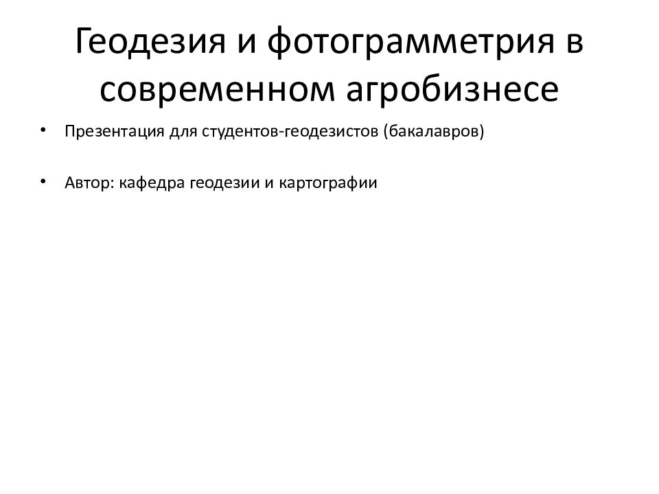 Первый слайд презентации: Геодезия и фотограмметрия в современном агробизнесе