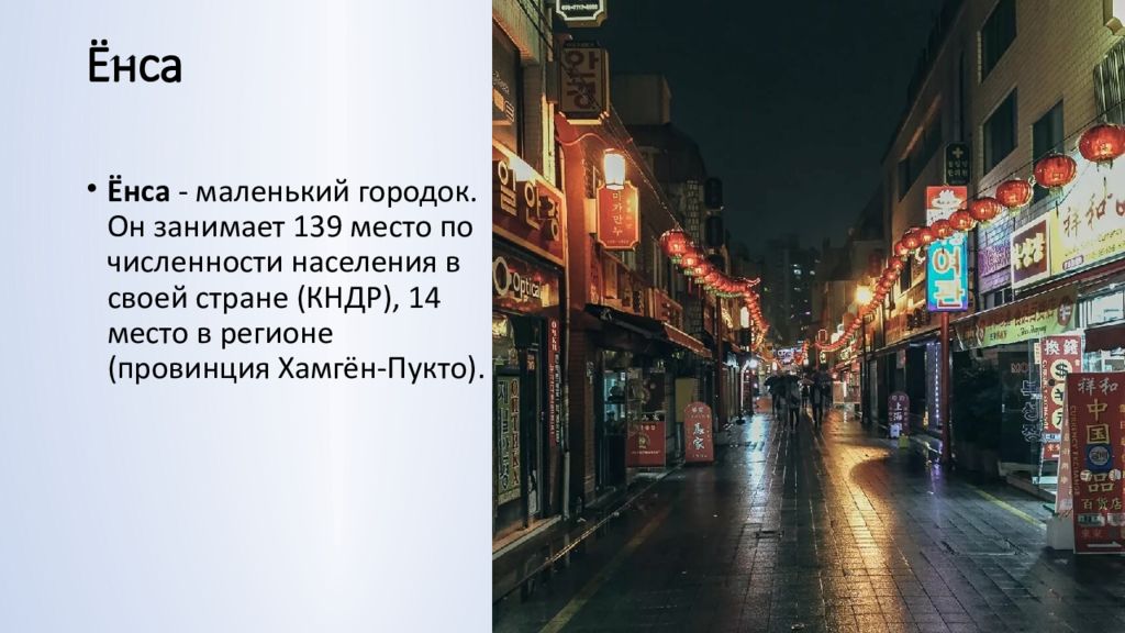 Ёнса - маленький городок. Он занимает 139 место по численности населения в своей стране (КНДР), 14 место в регионе (провинция Хамгён-Пукто ).